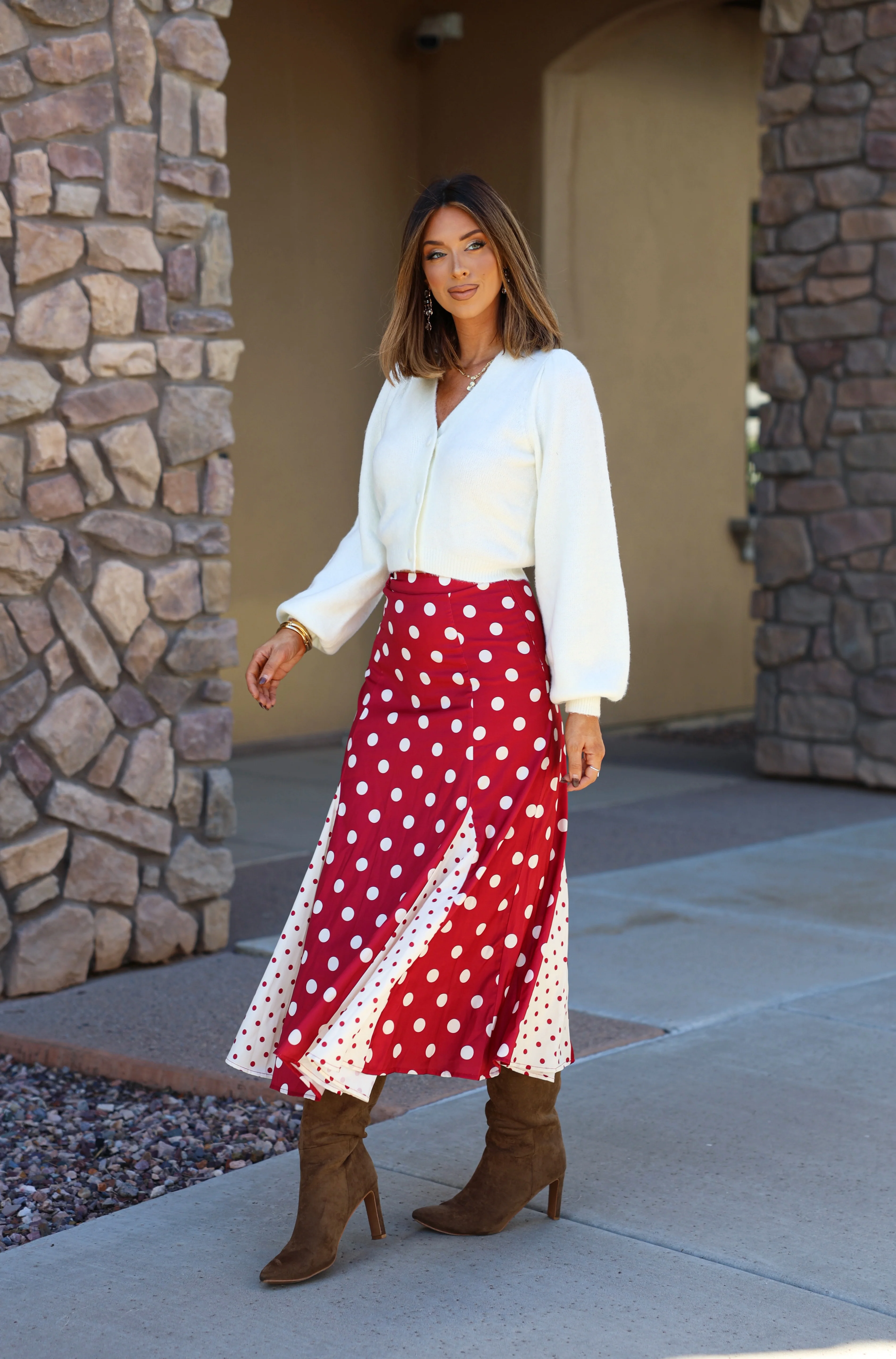 - Polka dot maxi skirt