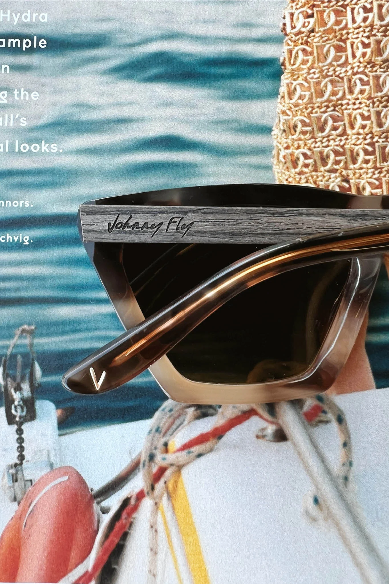 The Figure: A Modern Icon. This frame marks the first of our new "Iconic" line. Aggressive styling comprised of cotton acetate front section, wooden arms, spring hinges, and polarized lensing that make them Johnny Fly.
