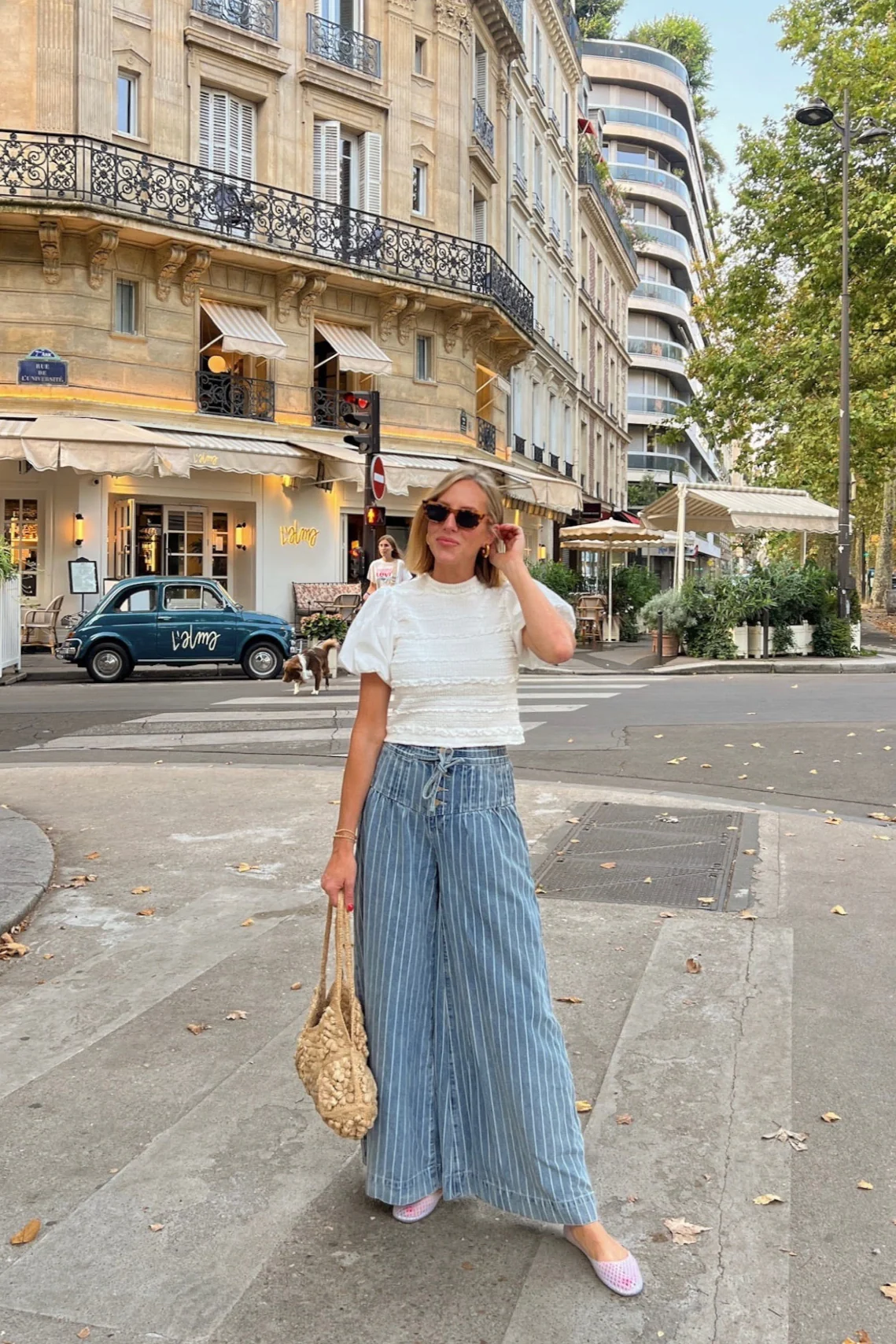 - White woven top