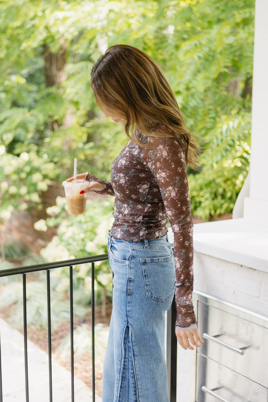 - Floral mesh top