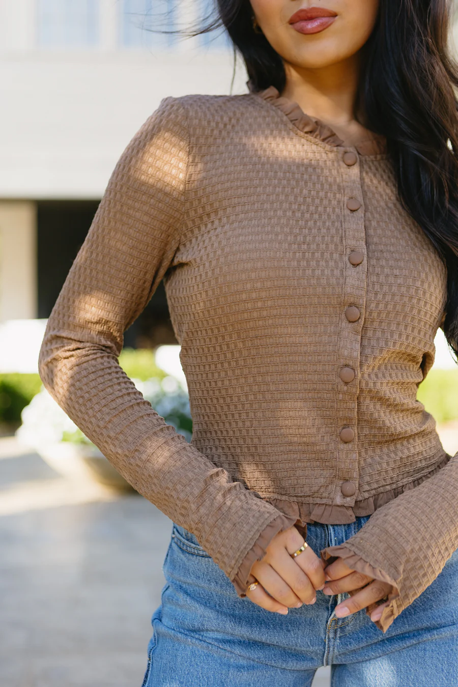 - Brown knit top