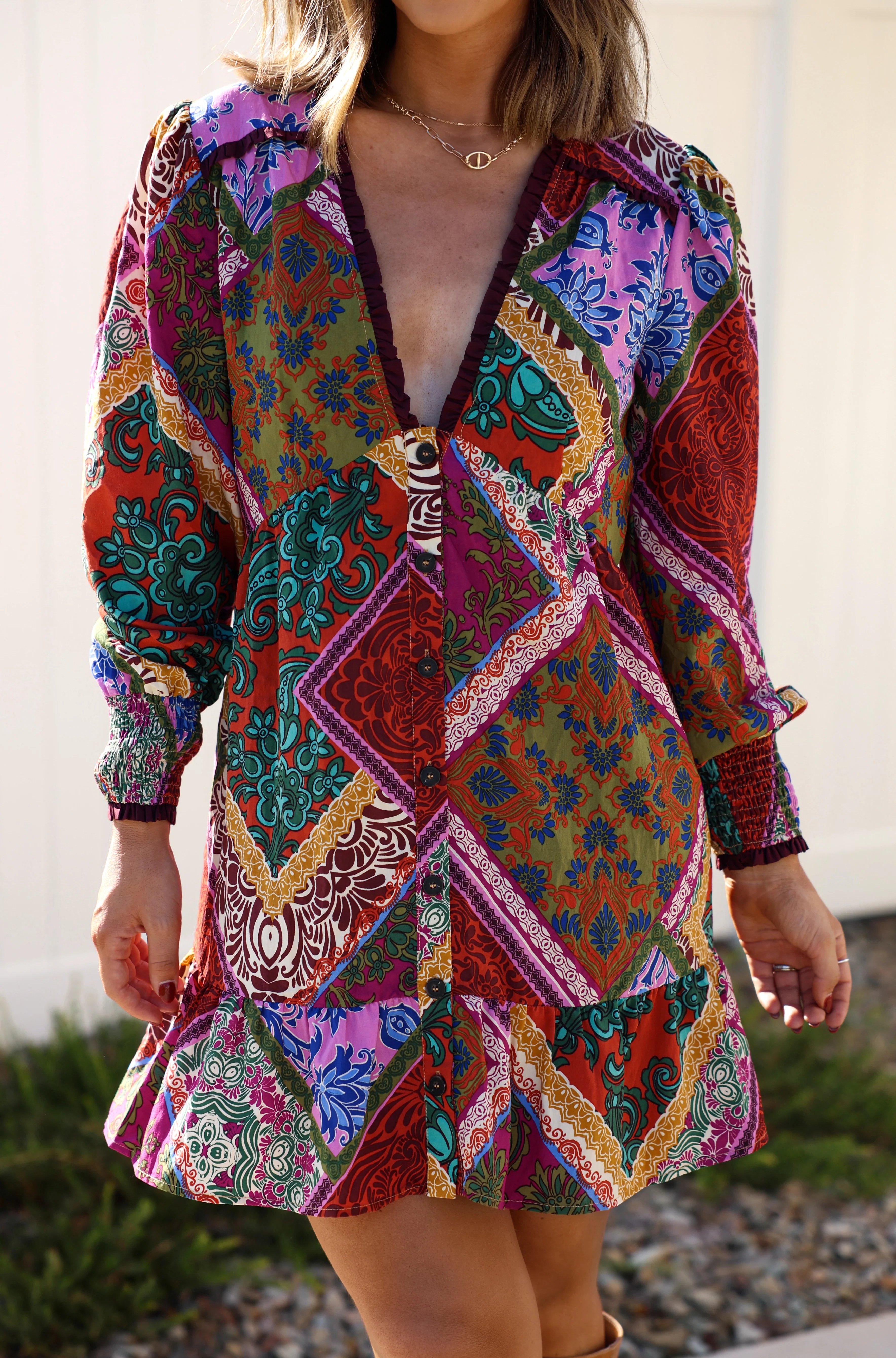 - Multi-pattern print dress